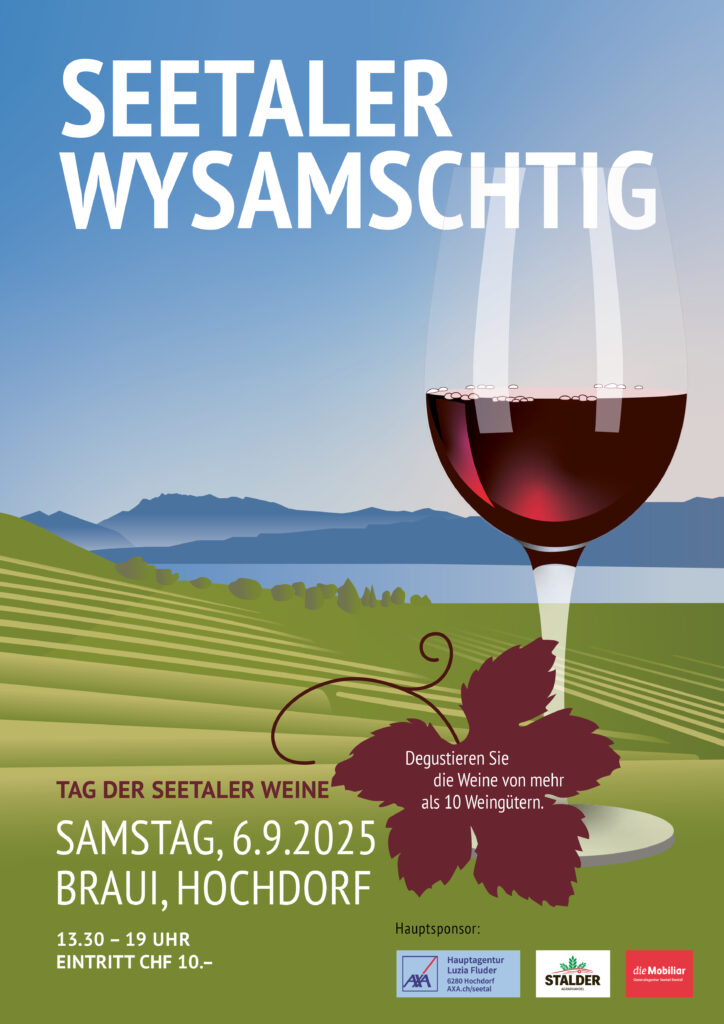 Wir freuen uns darauf unsere Weine am Seetaler Wysamschtig am 6. September 2025 von 13.30-19.00 Uhr in der Braui in Hochdorf zu zeigen. Degustieren Sie Weine von mehr als 10 Weingütern aus dem Seetal.